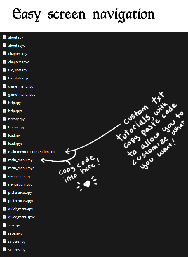 🔸Screens folder allows you to access main menu, quick menu and various other screens with ease!